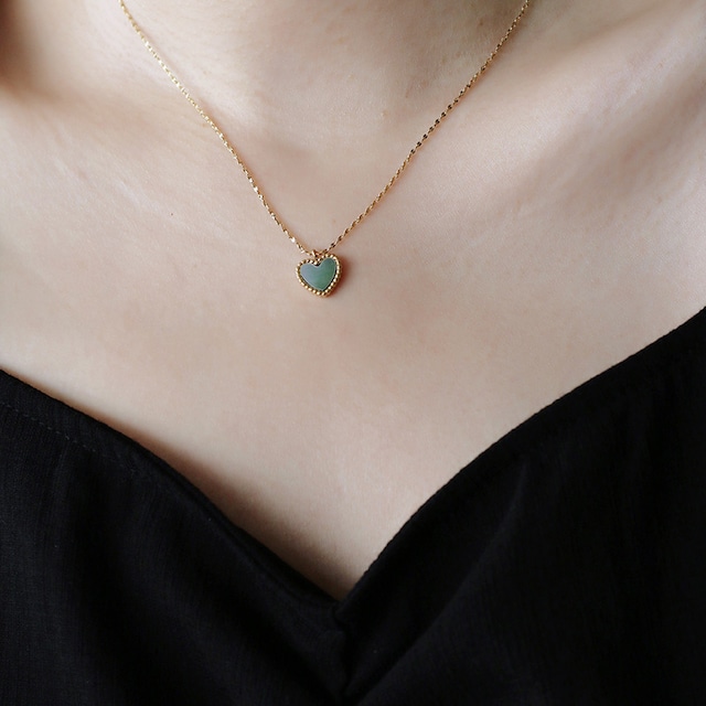 チタン鋼 ハートグレーシェルネックレス K18メッキ ゴールドカラー