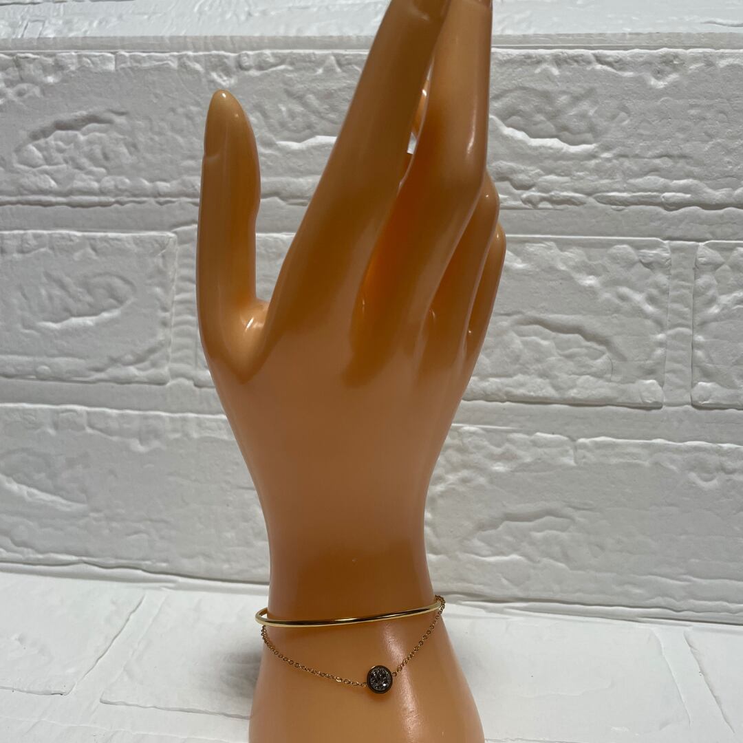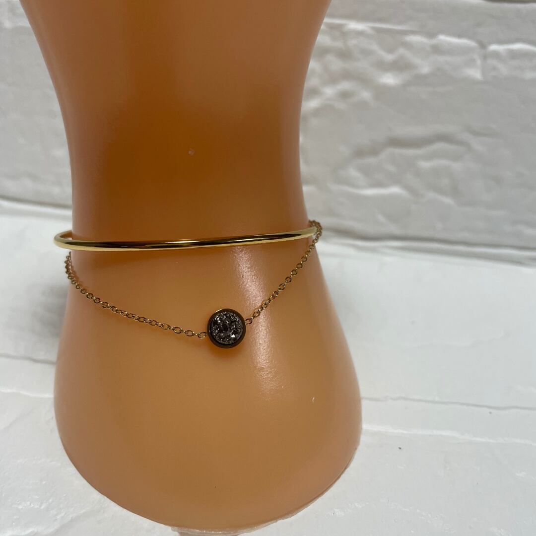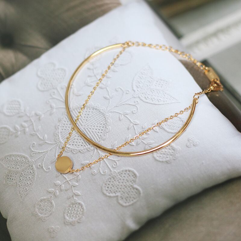 このブレスレットは、チタン鋼の特性を活かし、長時間の着用でも快適なフィット感を実現しています。ゴールドの輝きは、どんなスタイルにも合わせやすいデザインです。