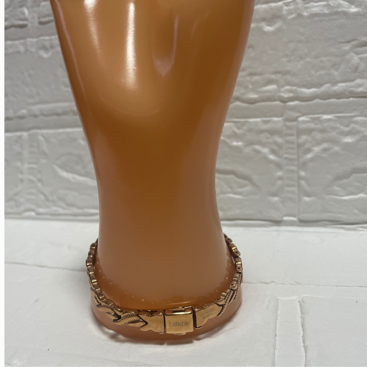 洗練されたデザインのゲルマニウム99.99% チタンブレスレットは、体にやさしいゲルマニウムと高品質なチタンを使用しており、ゴールドの美しい輝きが手元を華やかに彩ります。