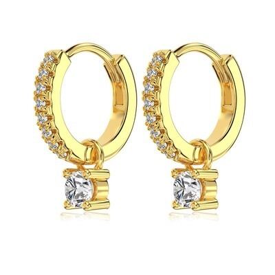 SV925 フープピアスジルコン ゴールド (チャームジルコン取り外し可能)