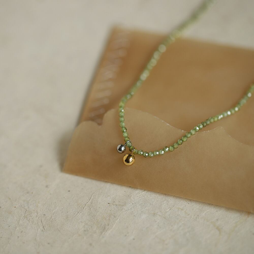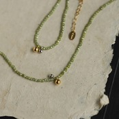 チタン鋼 グリーンビーズネックレス レトロチョーカー風