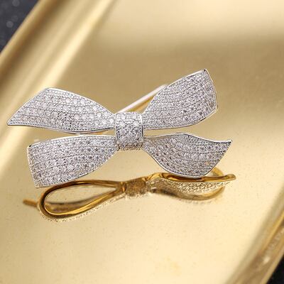 ぜひこのジルコンリボンブローチをお手に取ってみてください!煌めく存在感があなたのスタイルを引き立てます。